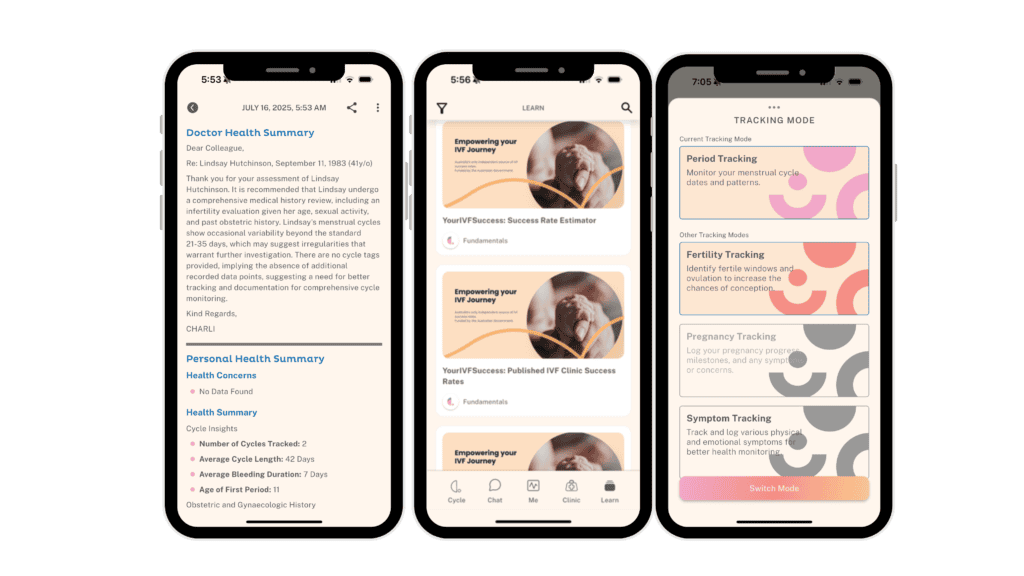 Conceived and designed by prominent Australian healthcare professionals and crafted in collaboration with Australian women, CHARLI serves as your personal health advisor at your fingertips.